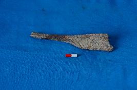| Description / विवरण | Iron broken knife. Slightly narrow to broad. Corroded surface. Broken from middle part. |