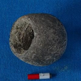 | Description / विवरण | Elongated barrel shaped bead, having smooth and a perforation at the centre.broken from edges. Coarse surface. |