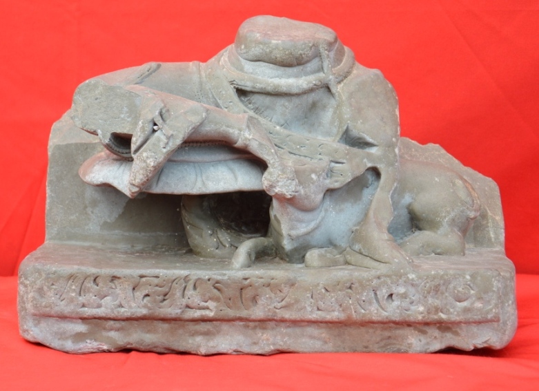 Fragmentary sculpture of male shaivayat deity may be Shiva sits on Nandi bull.