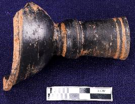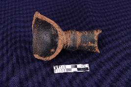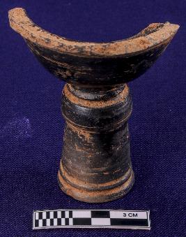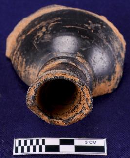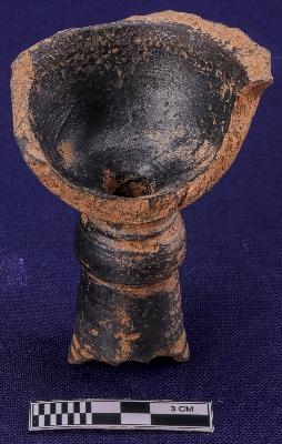 | Description / विवरण | Fragment of a chillam - hooka of black slipped ware, flaring open mouth and narrow whole from the bottom. |