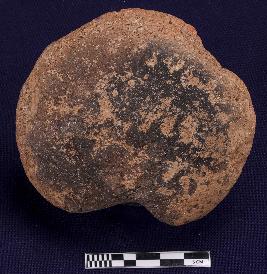 Circular in shape with a small butt end for handling. A circular band is visible around the base of the butt end.