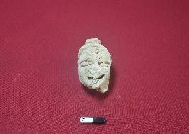 | Description / विवरण | Stucco head of a male with raised hair tied in a knot. Ears broken and slightly mutilated with the features. |