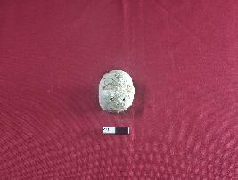 | Description / विवरण | Mutilated stucco head, it has two holes on the both side of the lip but lip is not visible. Eyes are partly visible. There is also a hole on forehead. |