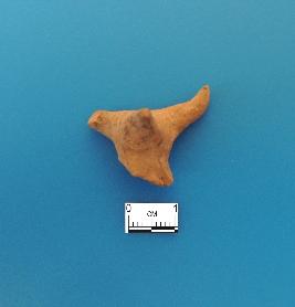 | Description / विवरण | Fragmentary buff coloured horned animal, probably of cattle. It is moderately baked. Only head is intact. Horns are solid; one horn is incurved and the other is broken. Snout is conical and pointed by pinching. It is crudely modelled and not realistic. |