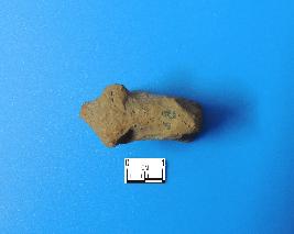 | Description / विवरण | Red fragmentary animal figurine, probably of an elephant. It has short separated legs. The cephalic lobes and ears are made by pinching. Roughly modelled. Damaged. |
