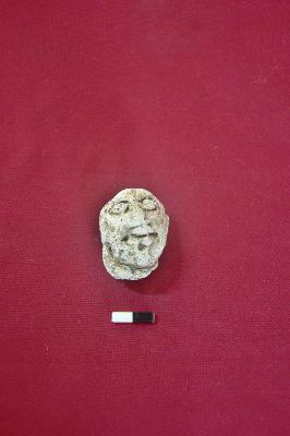 | Description / विवरण | Human head in stucco, both of eyes are partly visible, nose is chopped off and mouth is also partially visible. |