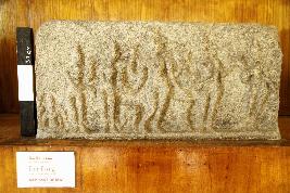 | Description / विवरण | The panel depicts Kalyana Sundara Murthi. The wedding of Lord Siva and Parvati. Brahma is shown as a priest and Vishnu and his consort are depicted as giving away Parvati to Shiva. Weathering has obscured the sculpture. |