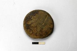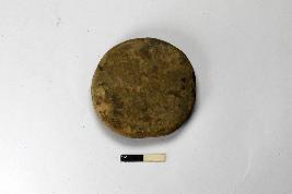 | Description / विवरण | A terracotta hopscotch, it is round in shape and the colour of the surface is grey. Edges are intact but surface is slightly chipped off. |