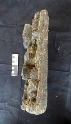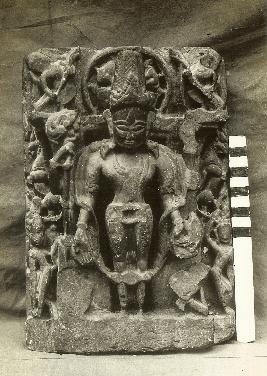 The sculpture is broken at few places mostly on lower part and right upper part.