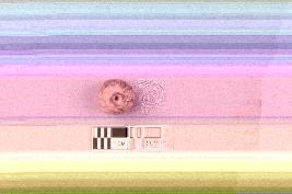 | Description / विवरण | Spherical bead with a perforation at the centre. It is ill fired, grey in colour and coarse in fabric. |