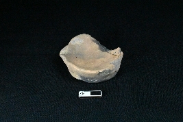 | Description / विवरण | Terracotta lamp, it is circular in shape and it has slightly out-turned rim, wick is partially visible. The colour of the object is red. |