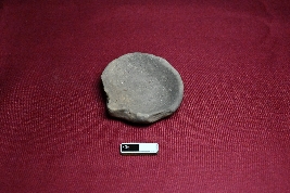 | Description / विवरण | A broken terracotta lamp, circular in shape, slightly out-turned rim, wick is intact and colour of the object is grey. |