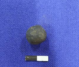 | Description / विवरण | A terracotta sling ball, it has round shape and smooth surface. The colour of the object is black. |