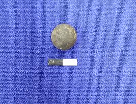| Description / विवरण | A terracotta sling ball, it is almost round in shape and has smooth surface. The colour of the object is black. There are some cracks on the surface of the object. |