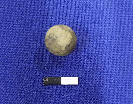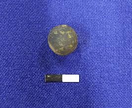 | Description / विवरण | A terracotta sling ball, it is round in shape and has smooth surface. The colour of the object is black. |