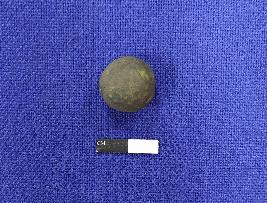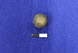 | Description / विवरण | A terracotta sling ball, it is round in shape and has smooth surface. The colour of the object is black. |