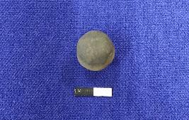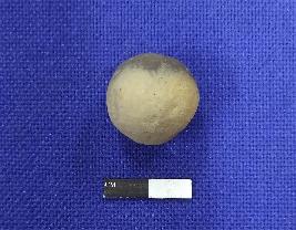 | Description / विवरण | A sling ball made of terracotta almost round in shape and the surface is smooth. |