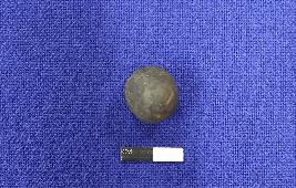 | Description / विवरण | A terracotta sling ball, it is round in shape with smooth surface. The colour of the object is black. |