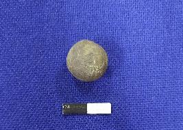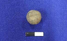 | Description / विवरण | A terracotta sling ball, it is round in shape and has smooth surface. The colour of the object is grey. |