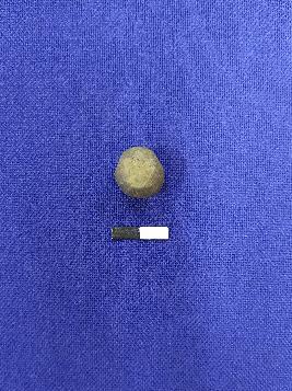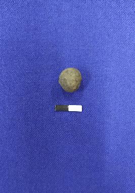 | Description / विवरण | A sling ball made of terracotta round shape. It was used for playing purpose. The colour of the object is black. |
