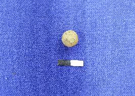 | Description / विवरण | A sling ball made of terracotta in round shape. It was used for playing purpose. The colour of the object is grey and the surface is rough. |