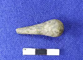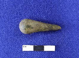 | Description / विवरण | A Terracotta stopper grey in colour having rounded base, slightly broken tip and smooth surface. |