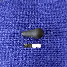 | Description / विवरण | A handmade terracotta stopper made with fine clay having broken tip and rounded base. The surface of the object is smooth and black in colour. |