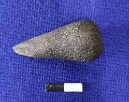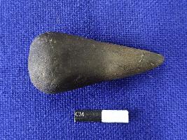 | Description / विवरण | A Terracotta stopper black in colour having rounded base, broken tip and smooth surface. |