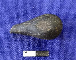 | Description / विवरण | A handmade terracotta stopper made with fine clay having broken tip and rounded base. The surface of the object is smooth and black in colour. |