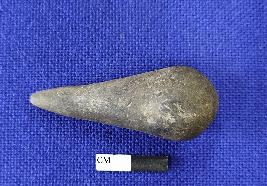 | Description / विवरण | A handmade terracotta stopper made with fine clay having pointed tip and rounded base. The surface of the object is smooth and black in colour. |