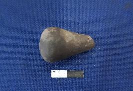 | Description / विवरण | A handmade terracotta stopper made with fine clay having rounded base and half broken. The surface of the object is smooth and grey in colour. |