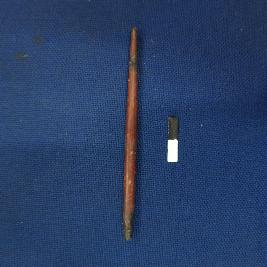 | Description / विवरण | A bone pin with pointed tip, grooving at both the two points. It is probably a hair-pin or used as working tool. |