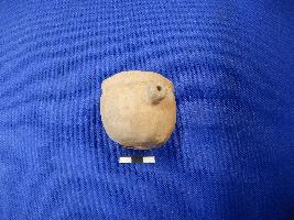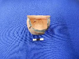 | Description / विवरण | Miniature pot with a small spout on it body; etches at its neck. It is broken. Rim is slightly flared out. |