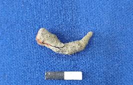 | Description / विवरण | Heavily rusted iron nail, it has pointed working end while other end is flatted. The object is bended in shape. |