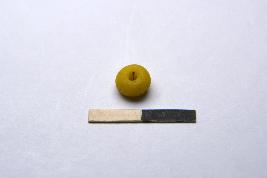 | Description / विवरण | Yellowish bead of glass with spherical in shape, smooth and polished surface. The bead is centrally perforated and circular cross section. |