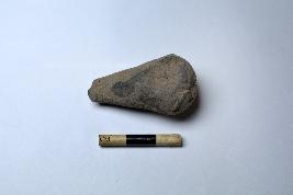 | Description / विवरण | A handmade terracotta stopper made with fine clay having broken tip and broken base. The slip has weathered off and thus the body became rough |