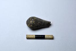 | Description / विवरण | A handmade terracotta stopper made with fine clay having broken tip and rounded base. The surface of the object is smooth. There are some irregular marks are visible on the surface of the object. |