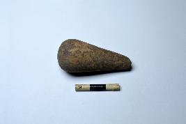 | Description / विवरण | A terracotta stopper made with fine clay having broken tip and rounded base. The surface of the object is smooth and brown in colour. |
