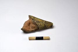 | Description / विवरण | A handmade terracotta stopper made with fine clay having broken tip and broken base. |
