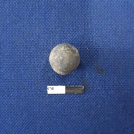 | Description / विवरण | A terracotta sling ball round in shape having smooth surface. The colour of the object is black. |