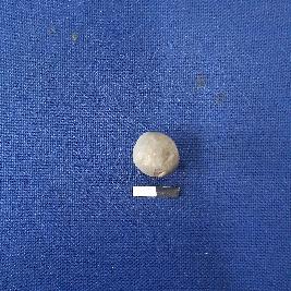 | Description / विवरण | A terracotta ball in round shape with smooth surface. It has some irregular marks on it. This object is slightly chipped off and grey in colour. |