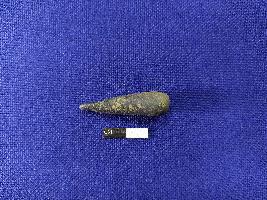 | Description / विवरण | Terracotta stopper, bulbous at one end and having a tapering shaft and its tip end is slightly pressed to flatter. |