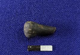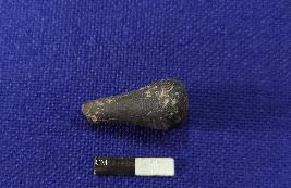 | Description / विवरण | A handmade terracotta stopper made with fine clay having smooth surface. It has broken tip and rounded base. The object is black in colour. |