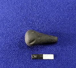 | Description / विवरण | Stopper; thicker and bulbous at the base, narrow towards tip end. Tip end is broken. Scratch mark on the body; blackish in colour. It is having a circular section. |