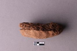 | Description / विवरण | Baked clay lump with two oval incuses, broken, worn-out, single-line inscription. |