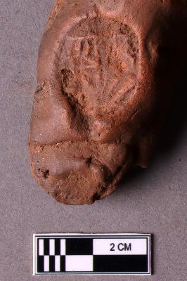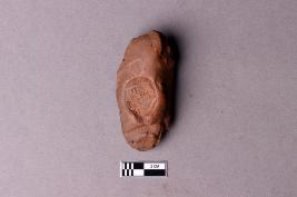 | Description / विवरण | Baked clay lump with a partially visible single inscription within a circular incuse which is undeciphered. |