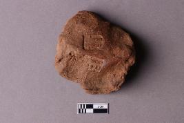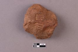 | Description / विवरण | Baked clay sealing having two rectangular incuses with two-line undeciphered inscriptions in each of them. |
