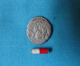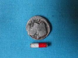 | Description / विवरण | A circular shaped coin of silver with a portrait of a human head on the obverse and inscriptions in bramhi and a symbol on the reverse. |