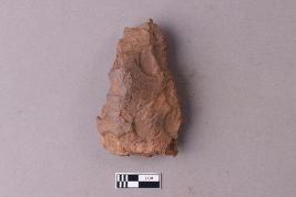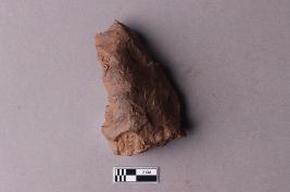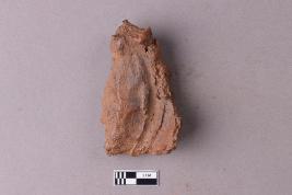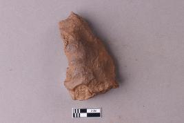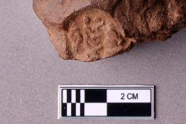 | Description / विवरण | Clay lump with reed mark at the back, upper part bears several circular incuses; one of them bears conch impression and few characters of a one-line legend (......भद्र ) A partial lotus flower motif is seen below. |