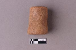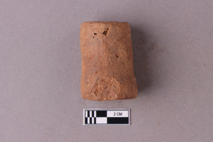 Irregularly cylindrical in shape, reddish in colour with flattened and polished ends.